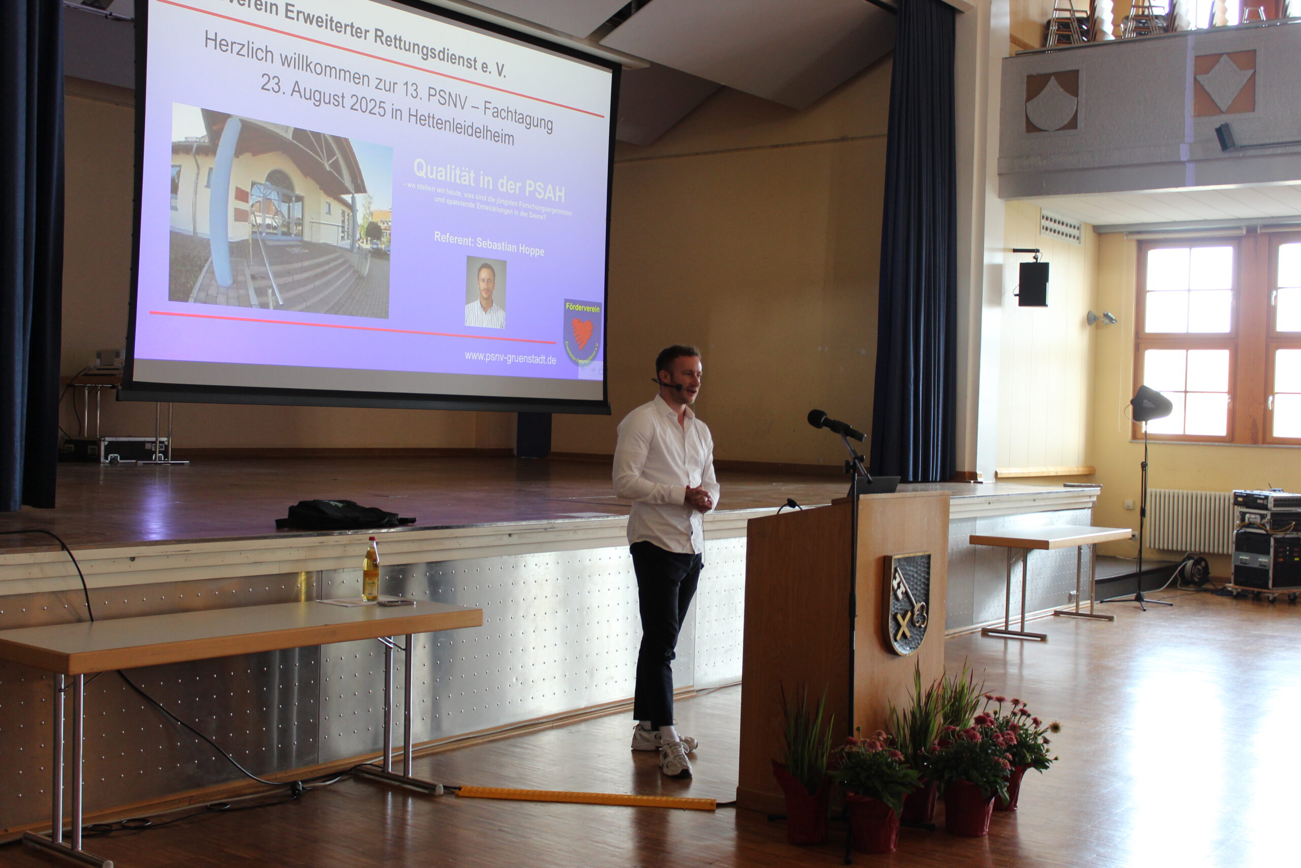 Am 23. August 2025 fand die 13. PSNV-Fachtagung in der Festhalle „Gut Heil“ in Hettenleidelheim statt. Um 9:30 Uhr begrüßten wir 130 Gäste aus 25 PSNV-Teams. Das Team „Oberes Edertal“ hatte mit 200 km die längste Anreise. Sebastian Hoppe, aktiv in der PSAH und Forscher an der Ludwig-Maximilians-Universität München, hielt spannende Referate zum Thema „Qualität in der PSAH – aktuelle Forschungsergebnisse und Entwicklungen“. Besonders interessant waren Aspekte zu „Zweitkontakten“ in der PSAH und die „five essential Elements“ nach Hobfoll, die die moderne Forschung als Leitlinien bestätigt.